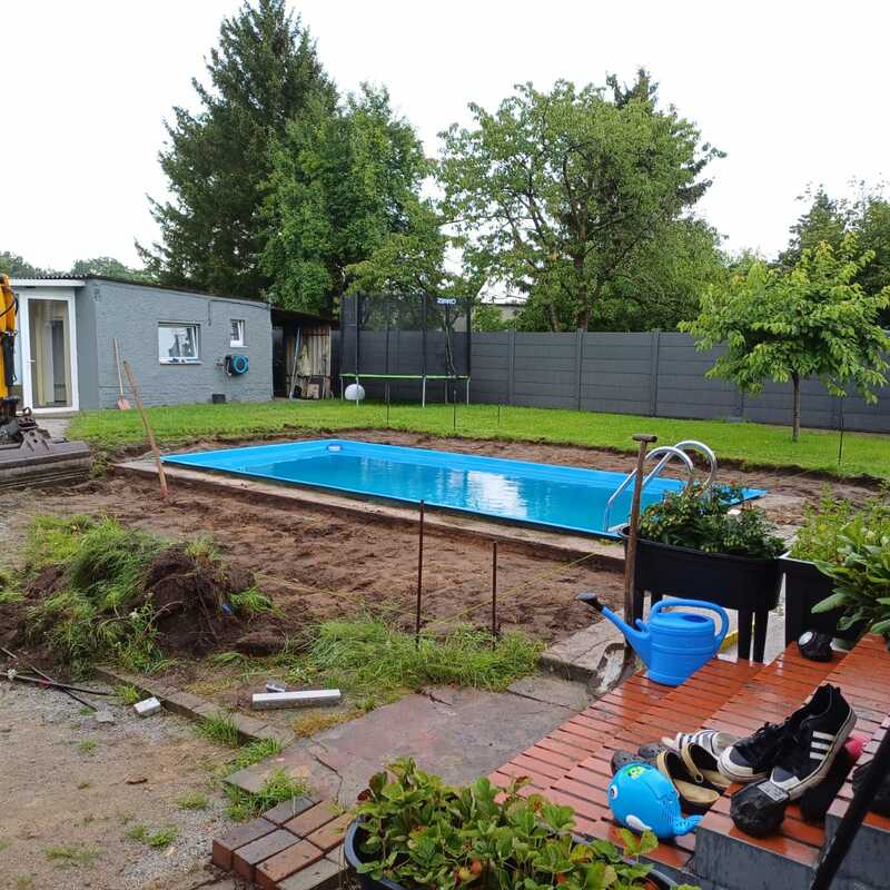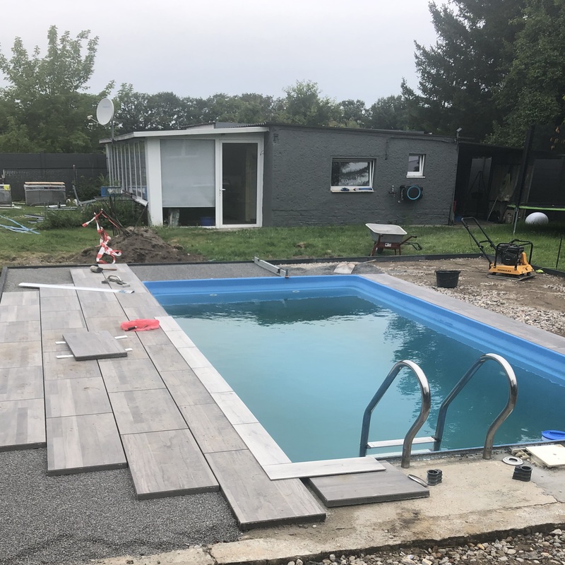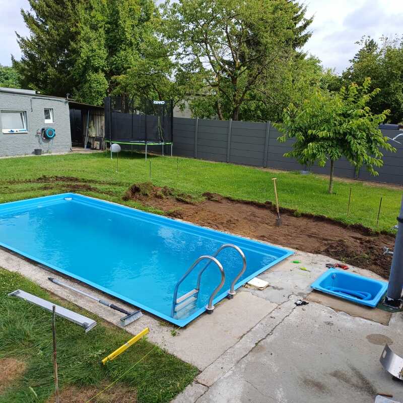 Bei der Baustellenbegehung fanden wir einen Altbestandspool aus Glasfaserkunststoff.