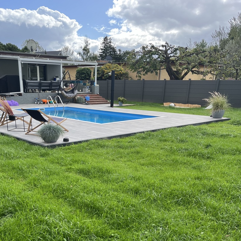 Nach intensiver Planung, Abstimmung der Materialien und Änderungen am Pool, entstand die neue Traumterrasse.
